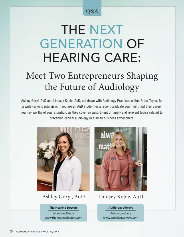 In the July 2025 edition of Audiology Practices, the official publication of the Academy of Doctors of Audiology, Dr. Lindsey was featured alongside industry expert Brian Taylor in an in-depth discussion on entrepreneurship and the future of audiology.